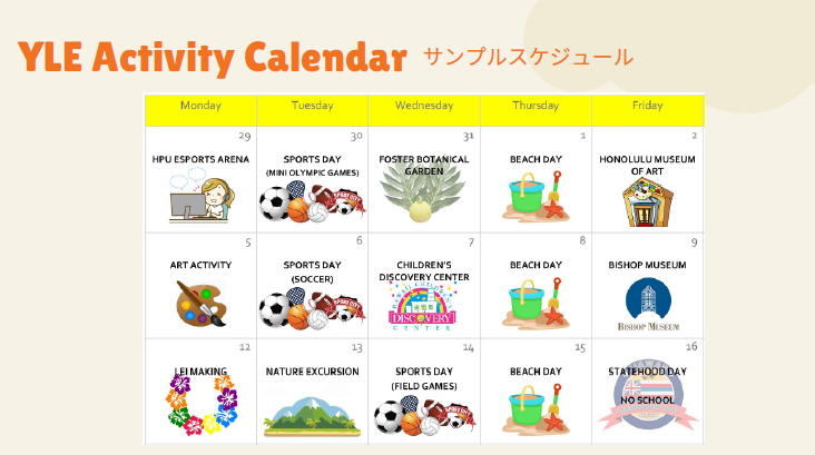 ビーチ活動、スポーツデー、フラ体験、ホノルル動物園など、ハワイならではの魅力がいっぱい。