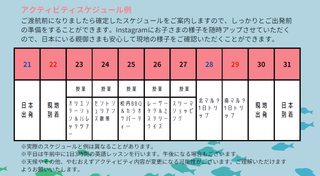スケジュール例は下記をご確認ください😊