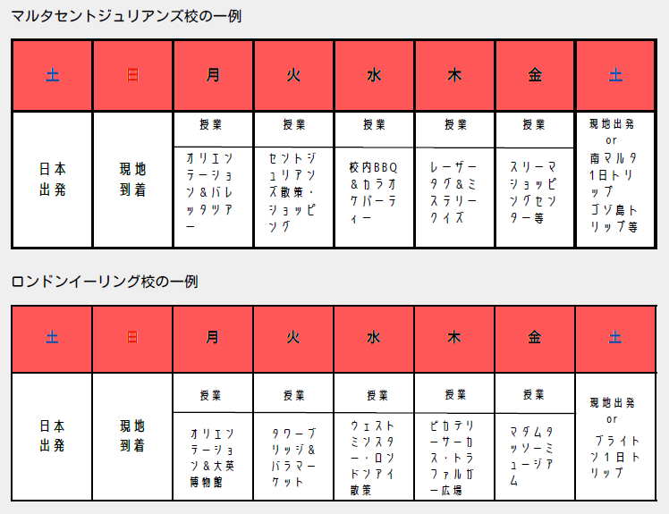 午前は英語勉強、午後はゲームや観光などのアクティビティ、土曜日は遊園地や動物園などの小旅行というプログラムになります!